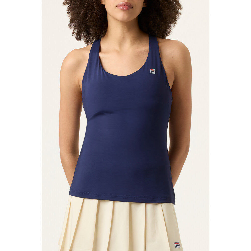 Juego. Set. El partido. El Tanque de espalda de carreras FILA Essentials Viene con tazas extraíbles y abrazos y estiramientos en todos los lugares correctos. Además, está hecho con protección UV, materiales que absorben el sudor y antiolores para que pueda concentrarse en su juego mientras se mantiene cómodo.