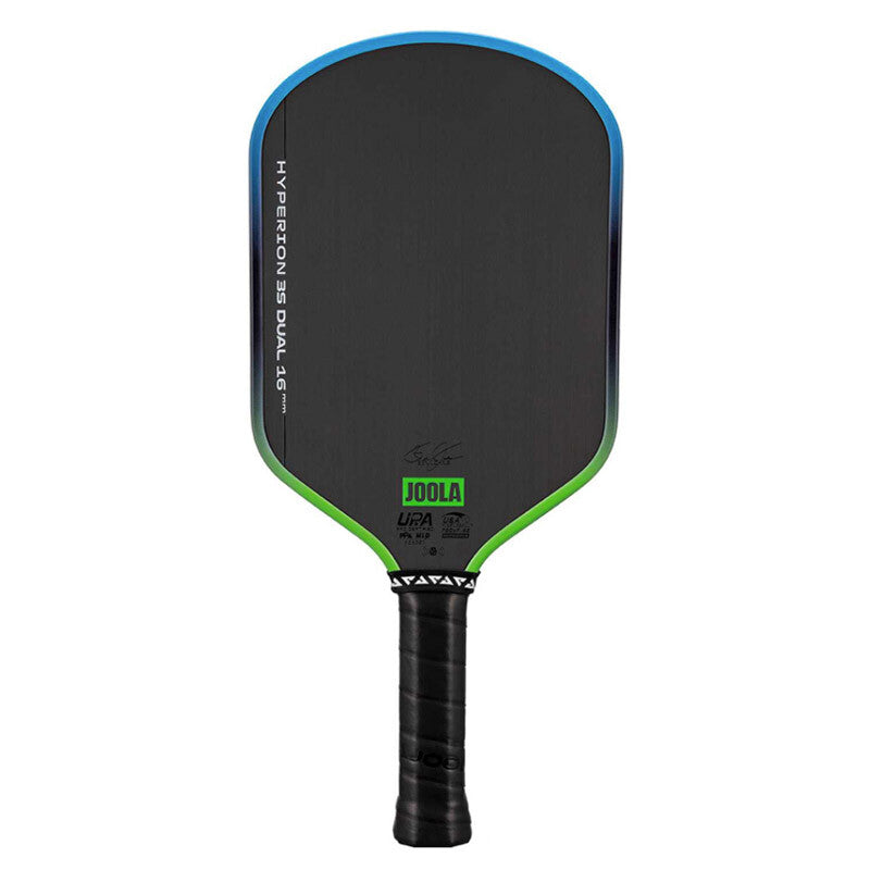 Probado, refinado y completamente marcado, el Hyperion 3S Dual 16mm pickleball paddle está listo para toda la competición de eventos pro-certificados UPA-A y aprobados por USAP PBCoR.43. El diseño de la aerocurva de Hyperion ha sido un elemento básico en la línea de paddle JOOLA desde el primer día. Esta paleta se siente como una extensión de su mano; fluido, controlado y sensible. El Hyperion 3S Dual cuenta con un núcleo nuevo y mejorado combinado con la probada tecnología Propulsion Core de JOOLA, que ofrece un equilibrio de accionamientos potentes y un control nítido. El Hyperion 3S Dual está acabado con un distintivo degradado azul y verde de doble color JOOLA a lo largo del protector de borde, lo que aporta un rendimiento actualizado y un aspecto LEGO característico a esta forma de paleta probada.