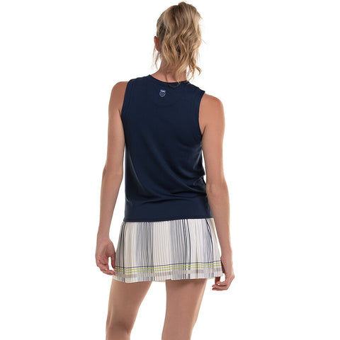 Una nueva versión fresca del clásico tanque de tenis en color peacoat. Este top de piqué de rendimiento ultraligero tiene un ajuste relajado que se mueve con cada movimiento. También cuenta con un cuello alto, espalda más llena para un atractivo modesto y está diseñado para golpear la cadera alta para complementar la tendencia de la falda de cintura alta que está sucediendo en el tenis.