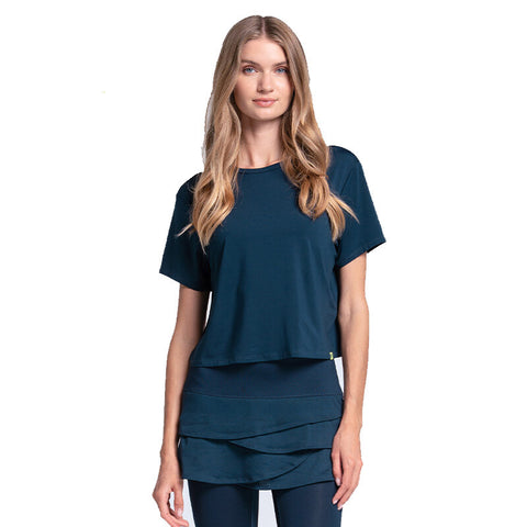 Conoce la camiseta de la temporada. Un diseño de cuello redondo y corte cuadrado que es la prenda perfecta para combinar con cualquier falda a la moda, creando un look deportivo y femenino. Todo está confeccionado en la tela ultraligera con protección solar SPF 50 LUV de Lucky In Love.