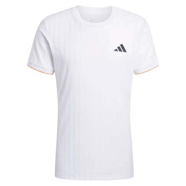 Reduzca el rendimiento a nivel de campeonato con la camiseta tenis Melbourne Freelift Pro Pro para hombre, una pieza atlética de élite diseñada para maximizar su potencial competitivo a través de un diseño de vanguardia y materiales de primera calidad. Esta camiseta de corte delgado combina una construcción de jacquard de rayas de malla ligera para una ventilación excepcional con una innovadora tecnología de axilas Freelift que ofrece una gama completa de movimiento, mientras que los detalles de acabado de punto plano honran la herencia deportiva clásica.