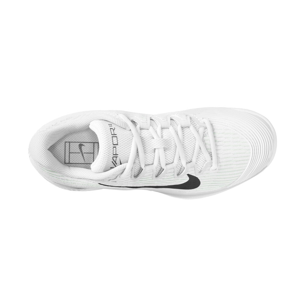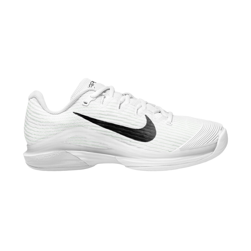 - Una banda completa de ajuste en el mediopié le permite tirar de los cordones más apretados para mejorar el ajuste y permitir cortes más rápidos. Hay espuma de entresuela entre el plástico y el caucho, que no estaba en el Vapor 11, por lo que puede golpear, cortar con agilidad sin igual.