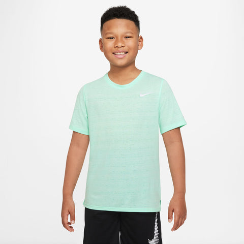 Prepárate para ponerlo en marcha en la camiseta de Nike Dri-FIT Miler para niños. La tela transpirable y la tecnología Dri-FIT te ayudan a mantenerte fresco y seco cuando juegas duro. Este producto está hecho con al menos 50% de fibras de poliéster recicladas. La tecnología Dri-FIT le ayuda a mantenerse seco y cómodo. La tela transpirable te ayuda a mantenerte fresco.