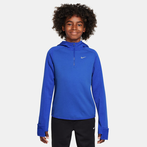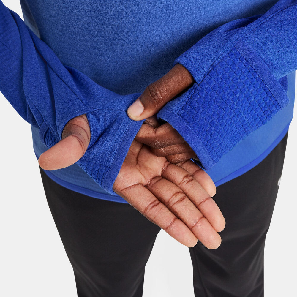 Caliente las prácticas y los juegos fríos con este acogedor top de entrenamiento Therma-FIT. Ligero y cepillado en el interior para el calor, este paño grueso y suave de rendimiento le ayuda a mantenerse caliente sin calentarse demasiado mientras juega. La tecnología Nike Therma-FIT ayuda a controlar el calor natural de tu cuerpo para mantenerte caliente en condiciones de clima frío. El paño grueso y suave tiene una textura de ladrillo elevado para una calidez y suavidad transpirable. La capucha ligera y los puños plegables le dan un calor adicional para cambiar las condiciones.