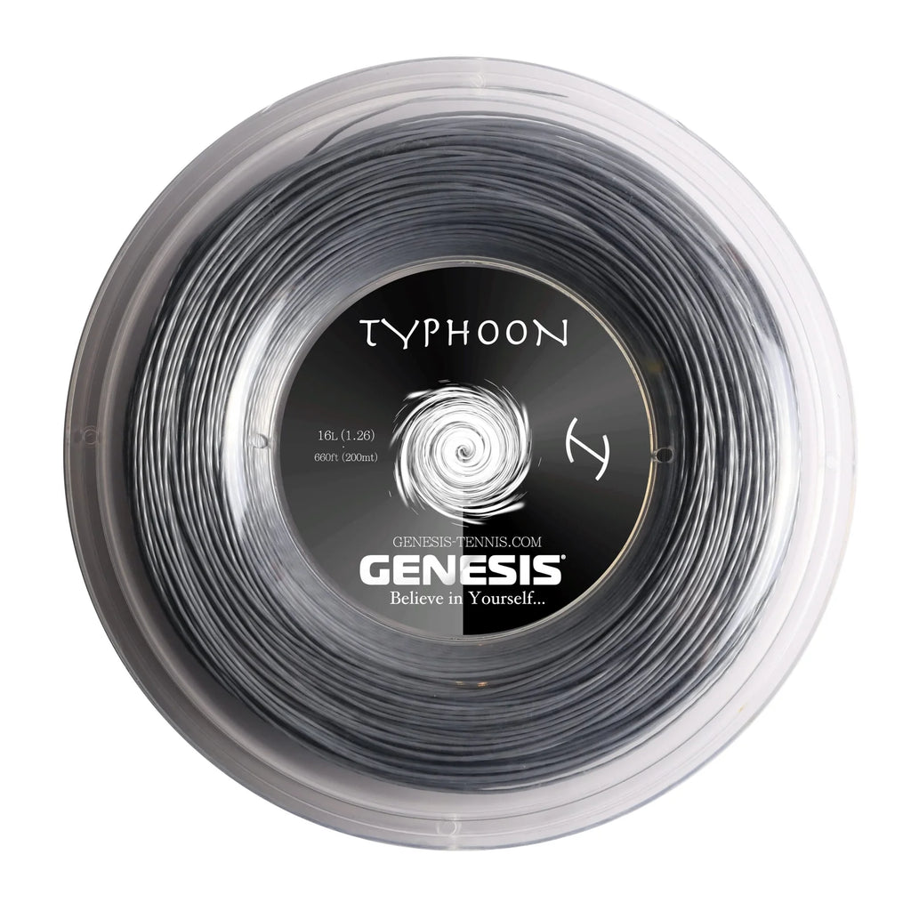 LA GENESIS TYPHOON ES UNA CUERDA DE MONO-FILAMENTO DE 5 LADOS, HECHA DE FIBRAS DE UNA FORMULA COMPUESTA DE RESINA DE POLIESTER DE ALTA TECNOLOGÍA COMBINADA CON NUEVOS ADITIVOS QUIMICOS QUE MEJORAN EL RENDIMIENTO Y FIBRAS DE ALUMINIO CON UNA CAPA DE TEFLON AUMNETA LA VIVACIDAD Y OFRECE UN BUEN ENCORDADO PARA EL JUGADOR.