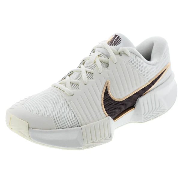 Las nuevas zapatillas NikeCourt GP Challenge Pro Tennis para mujer ofrecen una amplia base para la estabilidad y la amortiguación de espuma suave para la entresuela. La estabilidad se ve reforzada aún más por una placa de plástico del mediopié, que ayuda con los cambios de dirección rápidos. El dedo del pie medial tiene caucho adicional para ayudar a soportar el desgaste excesivo, y el antepié está protegido con caucho de alta abrasión para una mayor tracción.